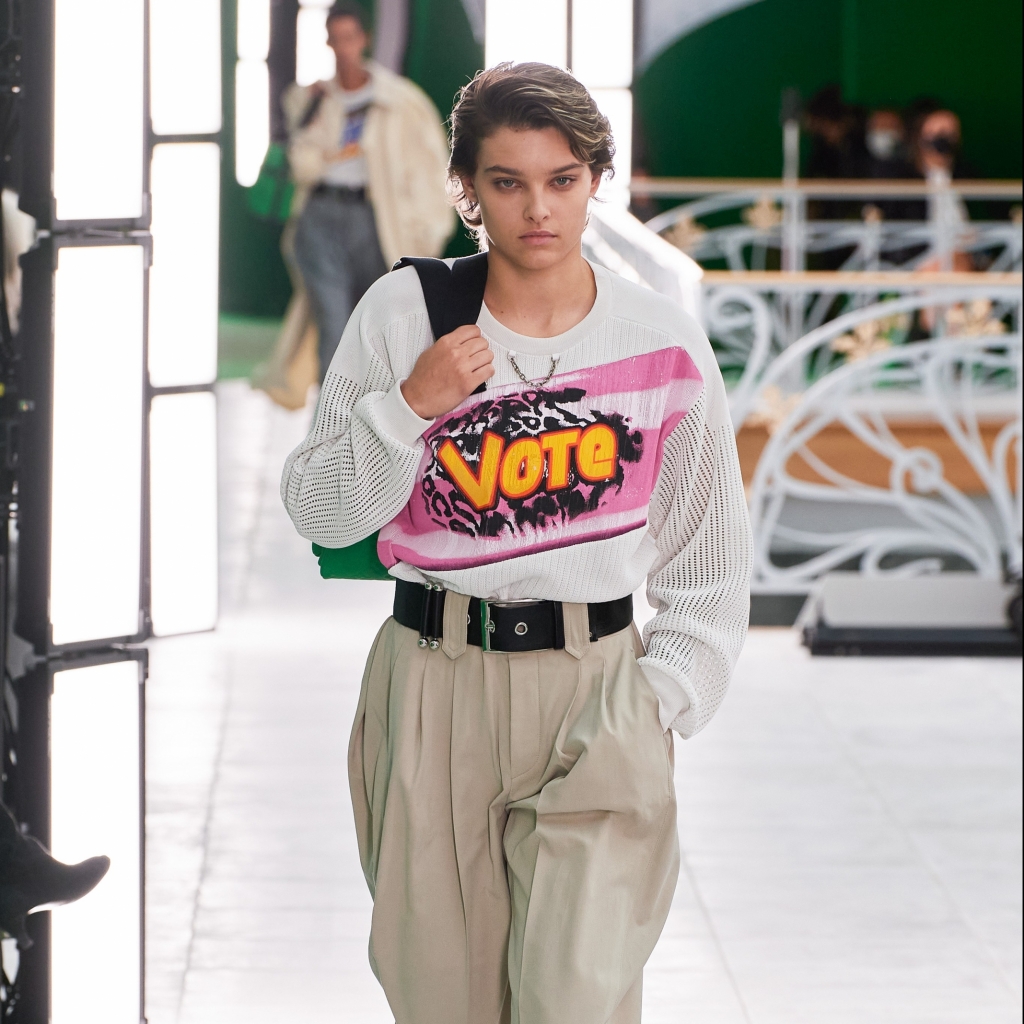 Nicolas Ghesquière continue de brouiller la frontière entre les genres avec sa nouvelle collection printemps-été 2021 pour Louis Vuitton, présentée ce mardi