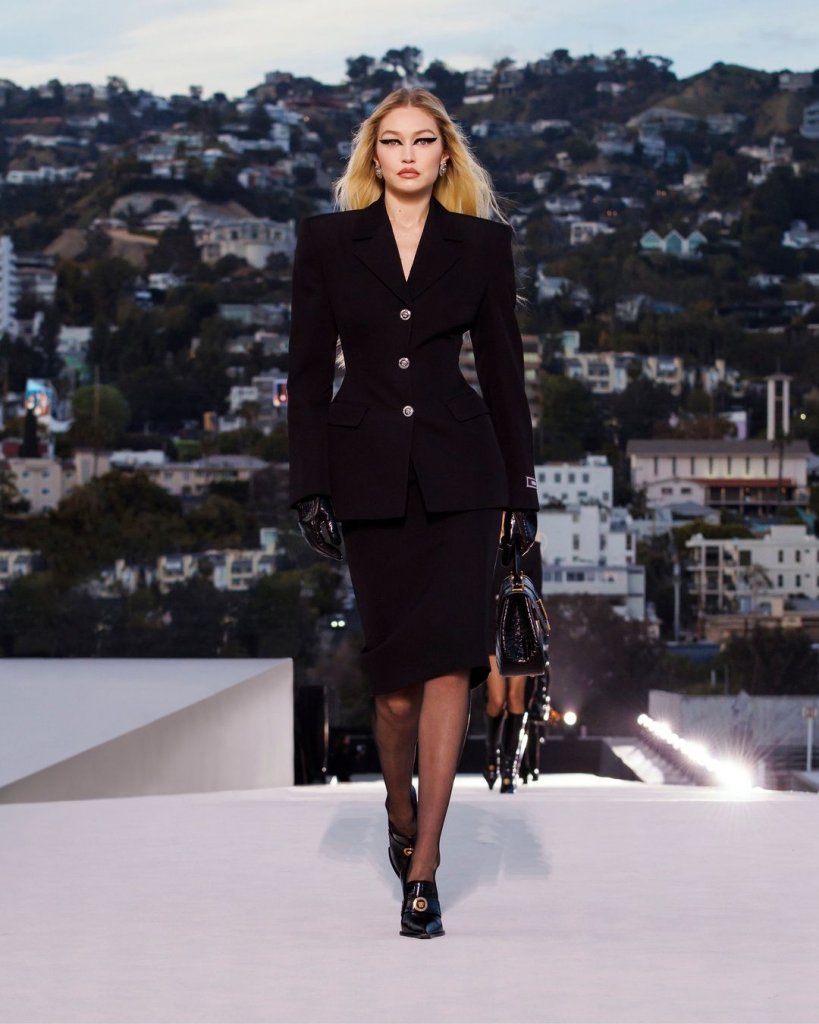 Donatella Versace a dévoilé sa collection automne-hiver 2023/2024 lors d’un défilé à Los Angeles, jeudi 9 mars, en présence de Lil Nas X, Dua Lipa, Elton John ou encore Paris Hilton