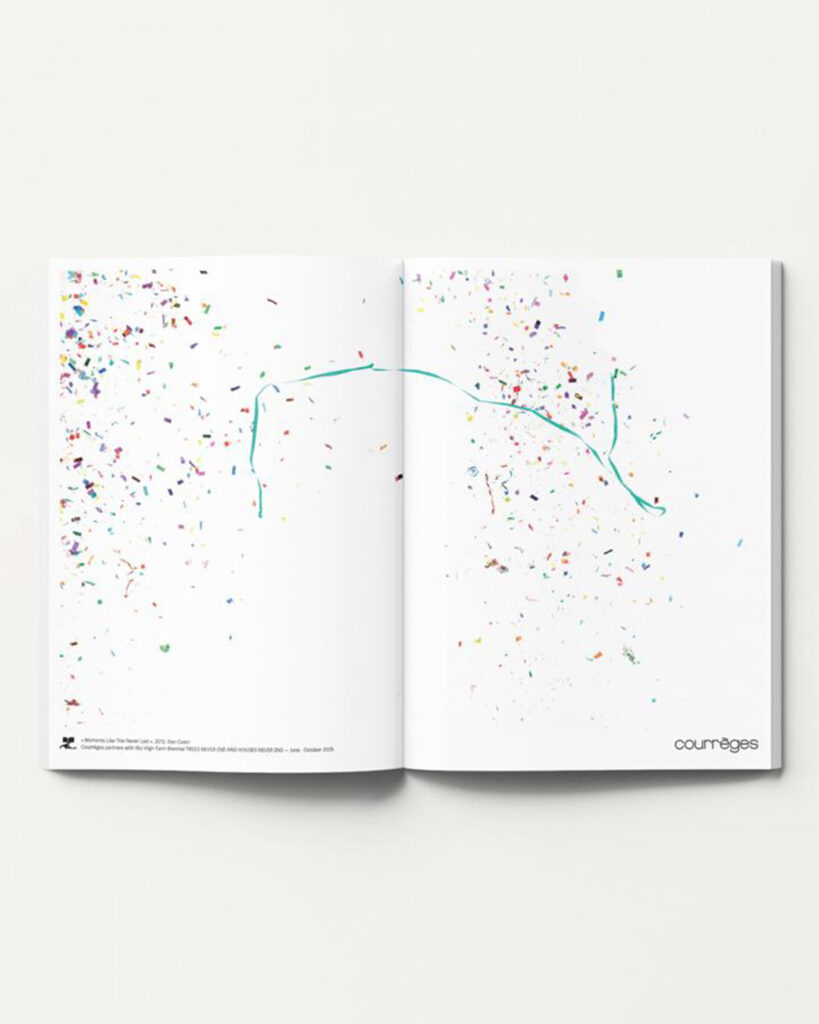 Plutôt qu’un shooting de collection, Nicolas Di Felice a choisi de dévoiler l’œuvre “Moments like this never last” de Dan Colen, tirée de son livre d’art préféré et source d’inspiration du défilé.