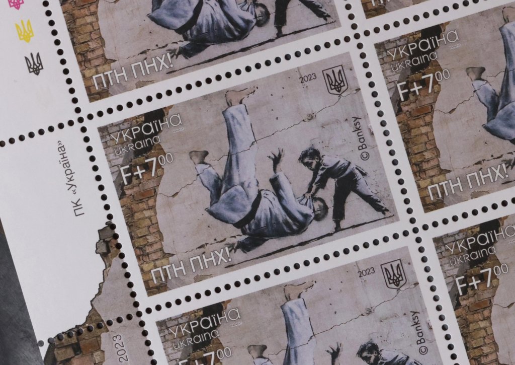 Après plus d’un an de guerre contre la Russie, l’Ukraine a édité un timbre postal reprenant une œuvre de Banksy montrant un petit garçon terrassant Vladimir Poutine au judo