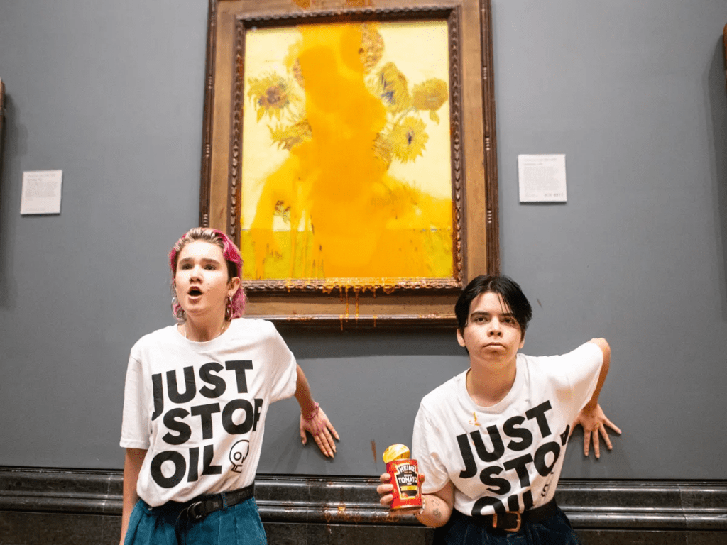 Alex De Koning, un porte-parole de Just Stop Oil, a annoncé que les activistes du mouvement pourraient être amené·e·s à durcir leurs actions pour être entendu·e·s. Il a évoqué la possibilité de taillader des œuvres d’art, à l’instar des suffragettes