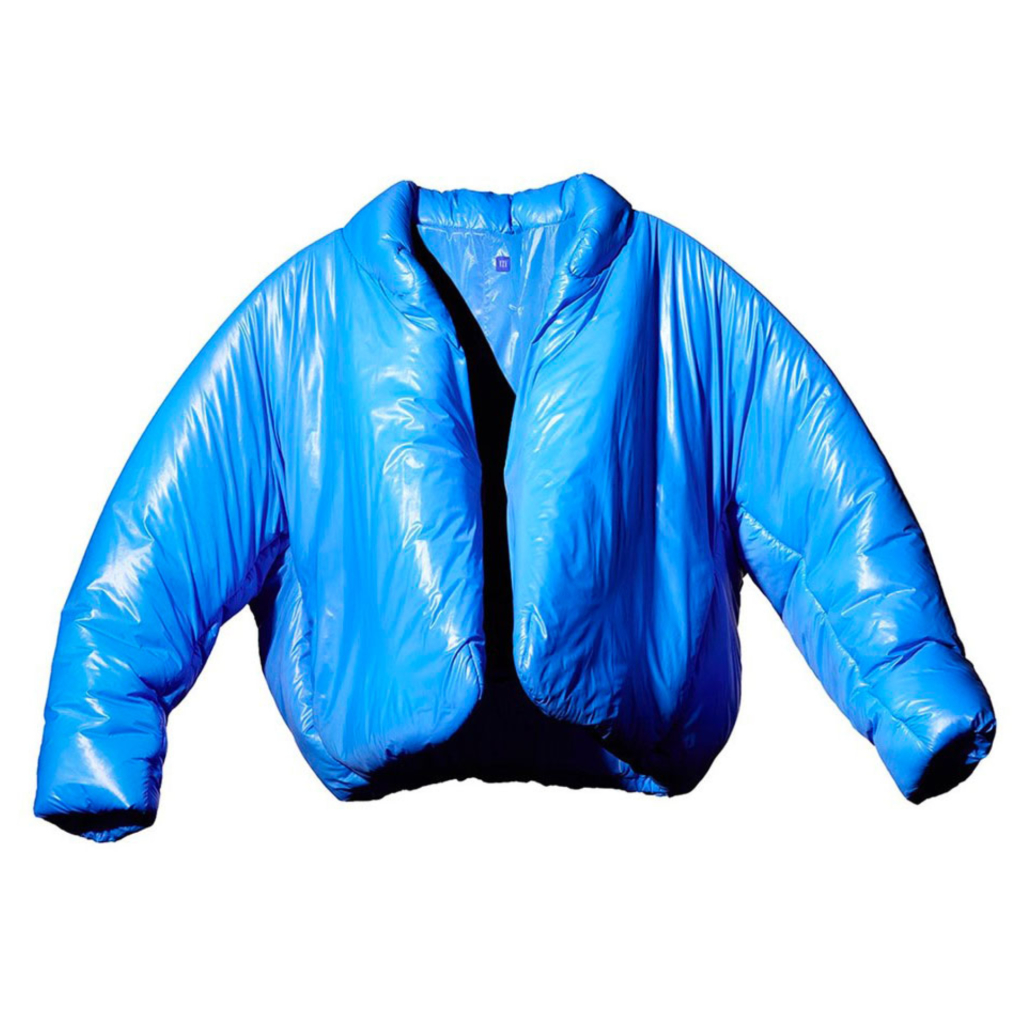 Kanye West a dévoilé la première pièce Yeezy issue de sa collection pour la marque Gap : une veste bleue en nylon recyclée