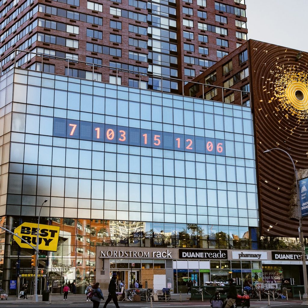 À New York, les artistes Gan Golan et Andrew Boyd ont imaginé un compte à rebours décomptant le temps restant avant que la crise climatique ne deviennent irréversible, soit environ 7 ans