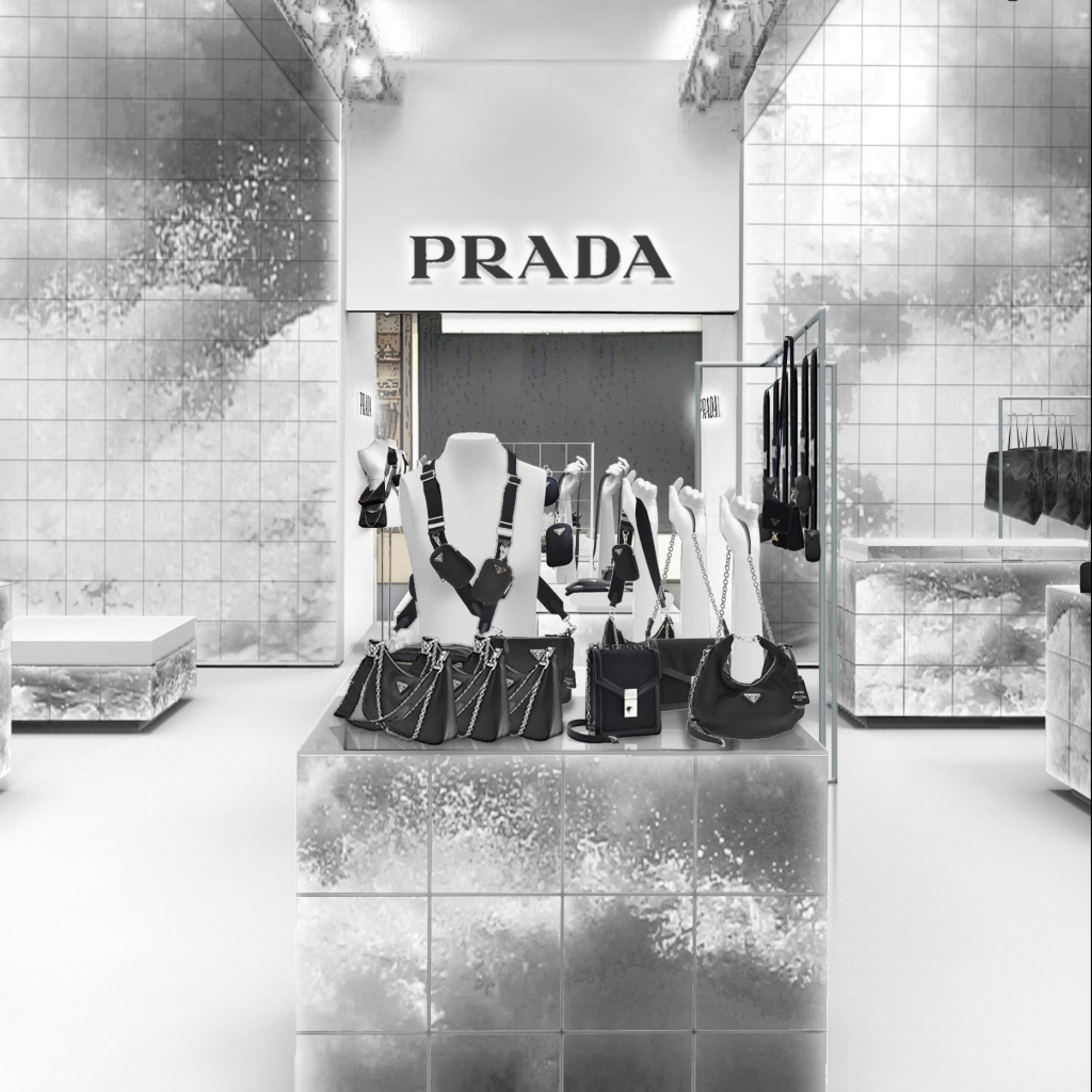 À l’occasion d’un projet collaboratif baptisé « Prada Abstract », le Printemps Haussmann accueille jusqu’au 18 octobre une boutique éphémère Prada dans son atrium