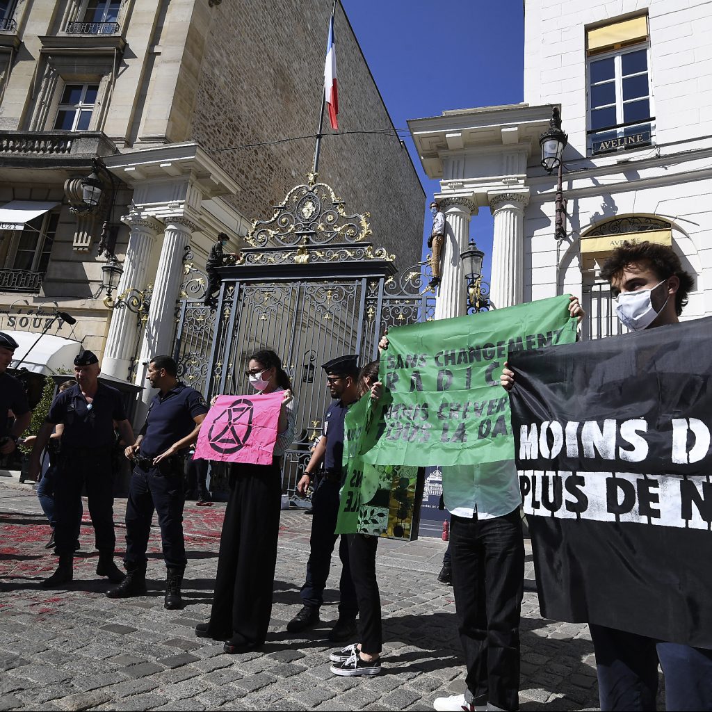 Le groupe d’activistes écologistes Extinction Rebellion a manifesté contre les violences policières devant le ministère de l’Intérieur