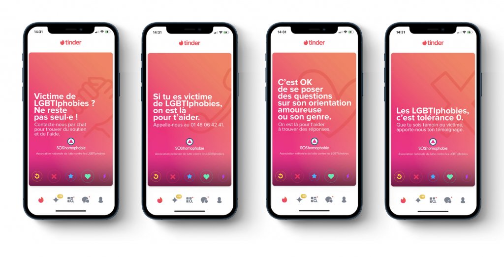 L’application de rencontres Tinder s’est associée à SOS Homophobie dans le cadre d’une nouvelle campagne de sensibilisation en vue de la Journée mondiale contre l’homophobie, la transphobie et la biphobie, qui se tiendra le 17 mai