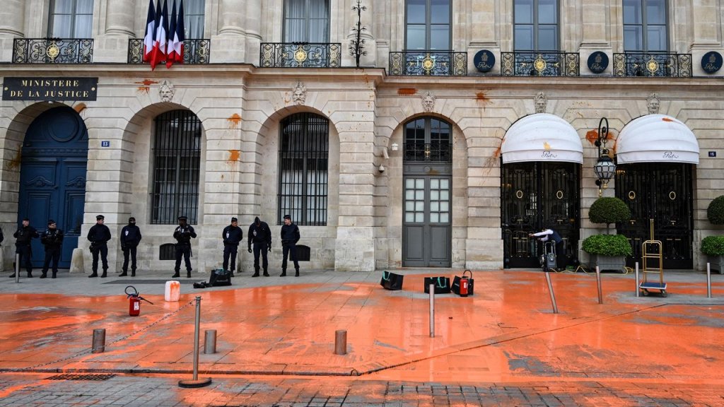 Lundi 1er mai, des militant·e·s écologistes d’Extinction Rebellion et de Dernière rénovation ont aspergé de peinture la façade de la Fondation Louis Vuitton et la place Vendôme, à Paris
