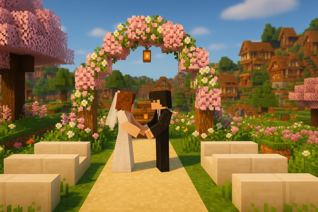 Dix ans après leur rencontre sur Minecraft, Sarah et Jamie, un couple anglo-américain, s’y sont mariés virtuellement. Pour 300 dollars, ils ont personnalisé leurs skins, serveurs et scripts, réunissant une cinquantaine de leurs proches sur le jeu, tandis que la cérémonie était retransmise sur Minecraft pour les plus âgé·e·s.