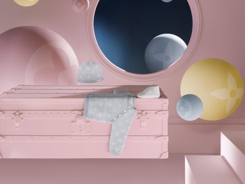 La maison Louis Vuitton a dévoilé sa toute première collection dédiée aux bébés âgé·e·s de 3 à 12 mois. Elle sera disponible à partir du 3 mars