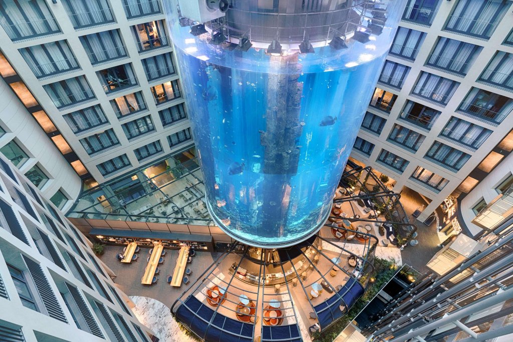Plus d’un million de litres d’eau et 1 500 poissons se sont déversés dans le hall de l’hôtel berlinois Radisson Blu, suite à l’éclatement du plus grand aquarium cylindrique du monde