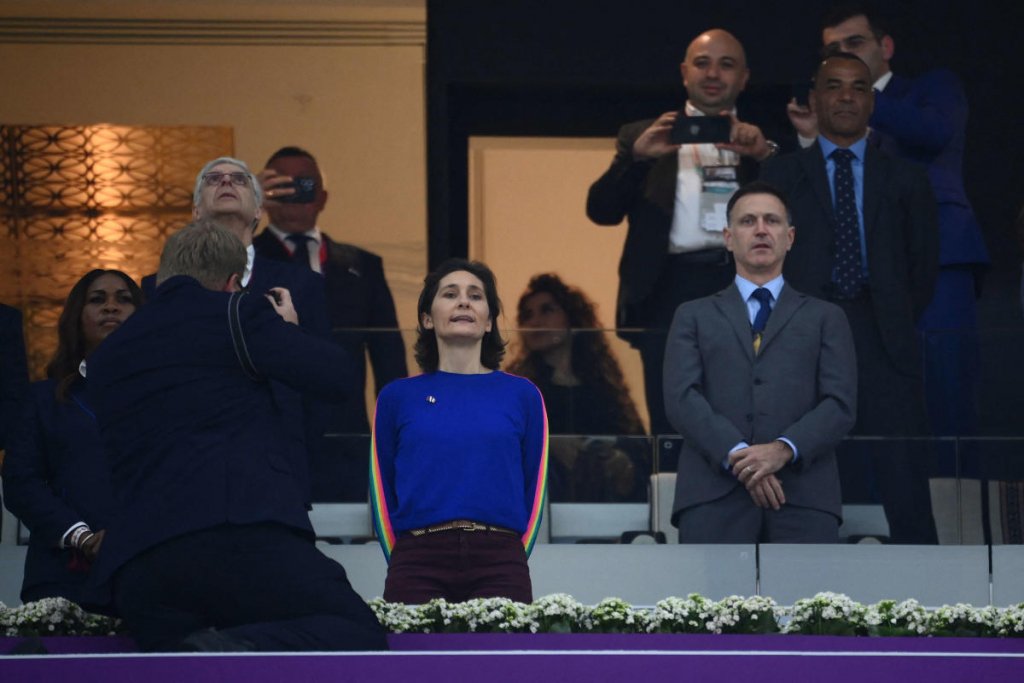 La ministre des Sports Amélie Oudéa-Castéra a assisté au match France-Angleterre au Qatar en portant un pull aux couleurs du drapeau des communautés LGBTQIA+, samedi 10 décembre