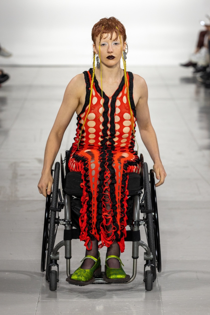 La créatrice Sinéad O’Dwyer a invité deux personnes en fauteuil roulant à défiler pour la présentation de sa collection printemps-été 2023, lors de la Fashion Week de Londres