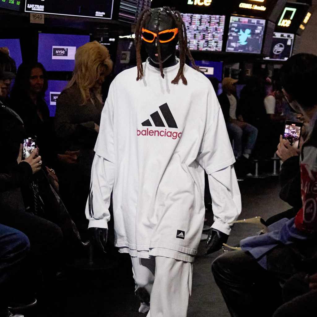 La maison Balenciaga a présenté sa nouvelle collection, comprenant une collaboration avec Adidas, lors d’un défilé organisé dans l’immeuble abritant la bourse de New York, dimanche 22 mai