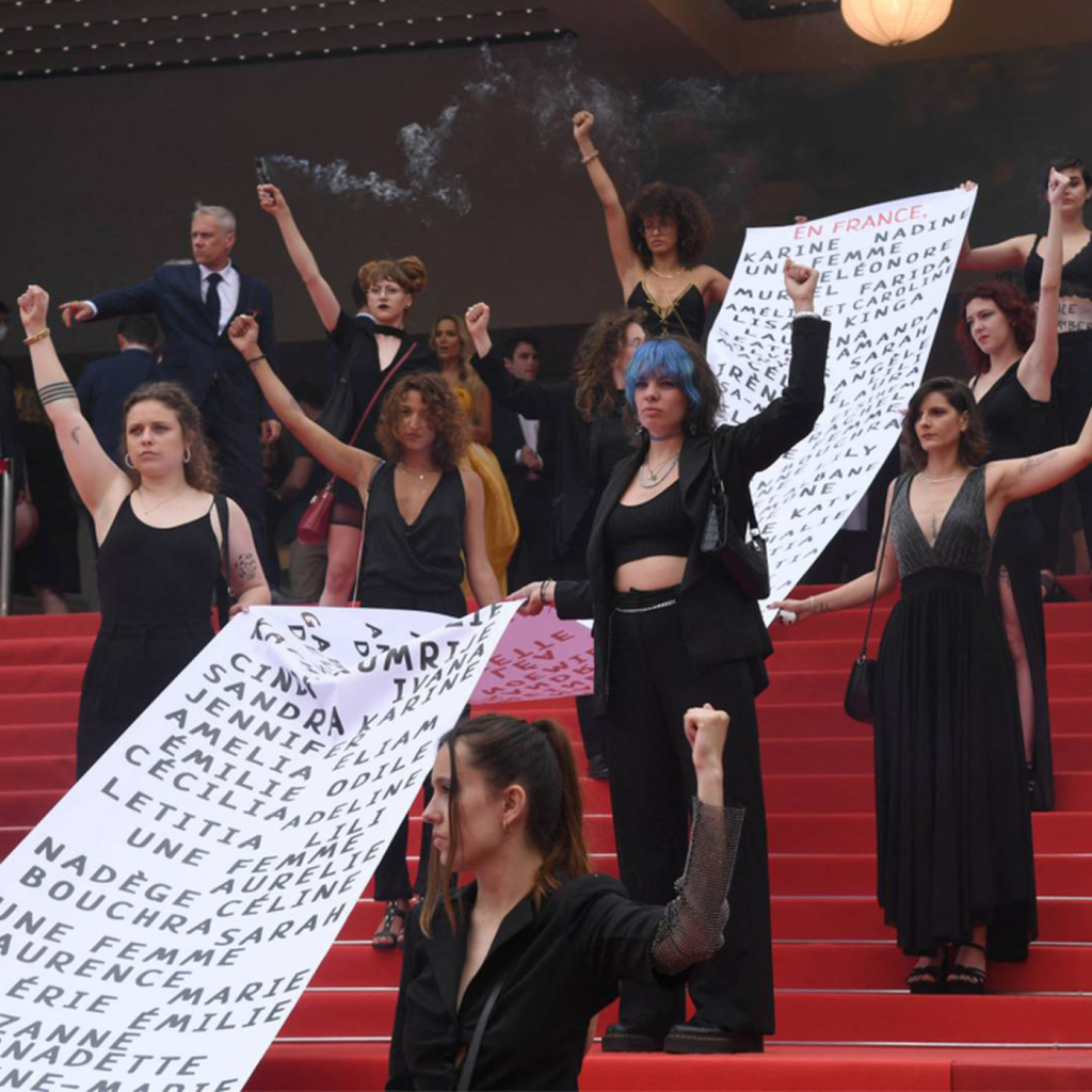 Ce dimanche, sur le tapis rouge du festival de Cannes, le collectif féministe « Les Colleuses » a brandi le nom des 129 femmes tuées par leur conjoint depuis l’année dernière, juste avant la projection d’un documentaire qui lui est dédié