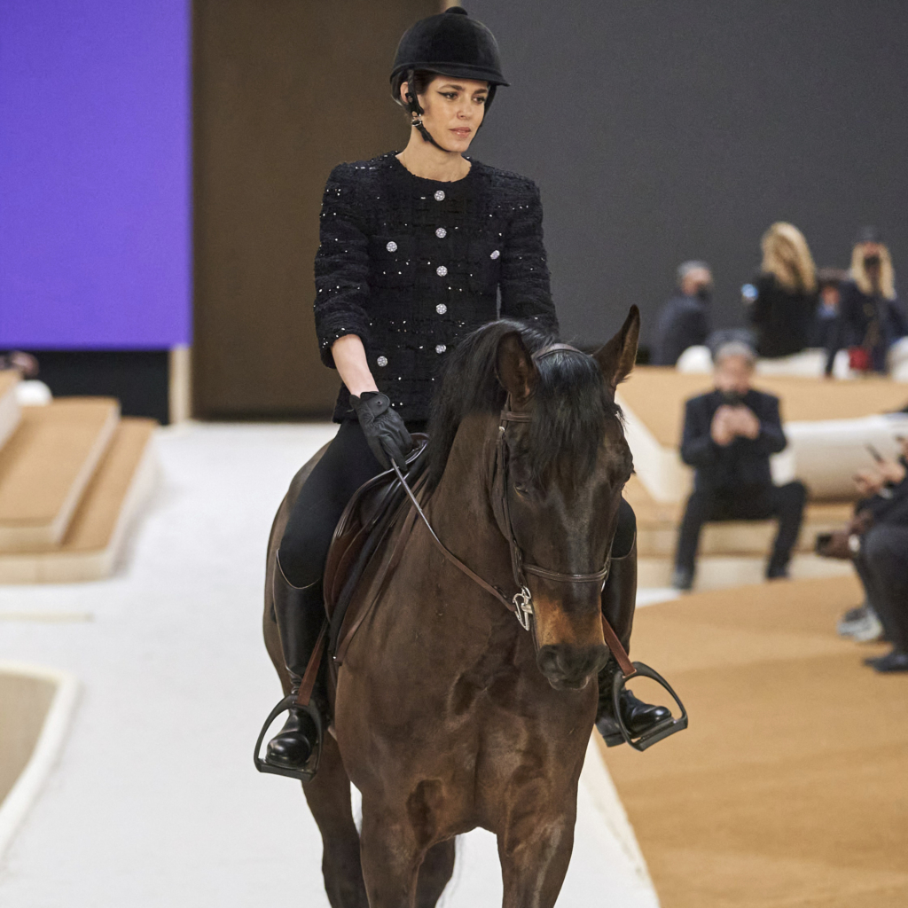 Virginie Viard a fait défiler Charlotte Casiraghi à cheval pour son défilé Haute Couture printemps-été 2022 pour la maison Chanel, organisé ce mardi 25 janvier