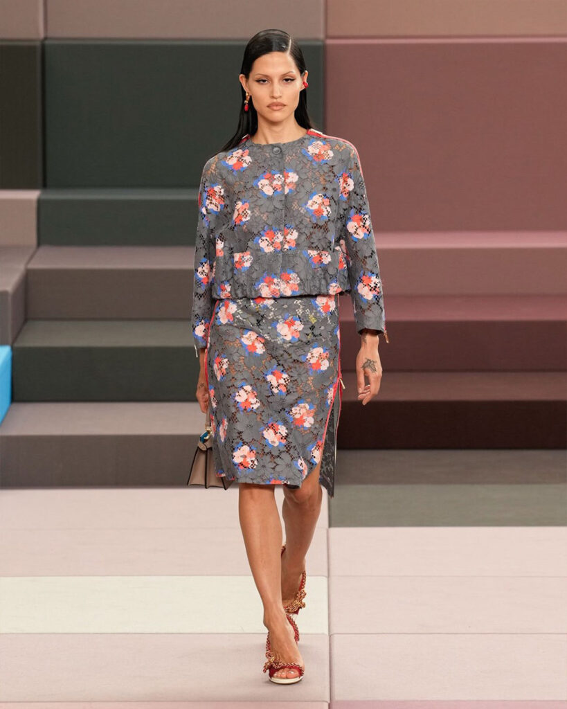 Pixels colorés, fleurs et sequins : le cocktail vitaminé de Fendi pour l’été 2026.