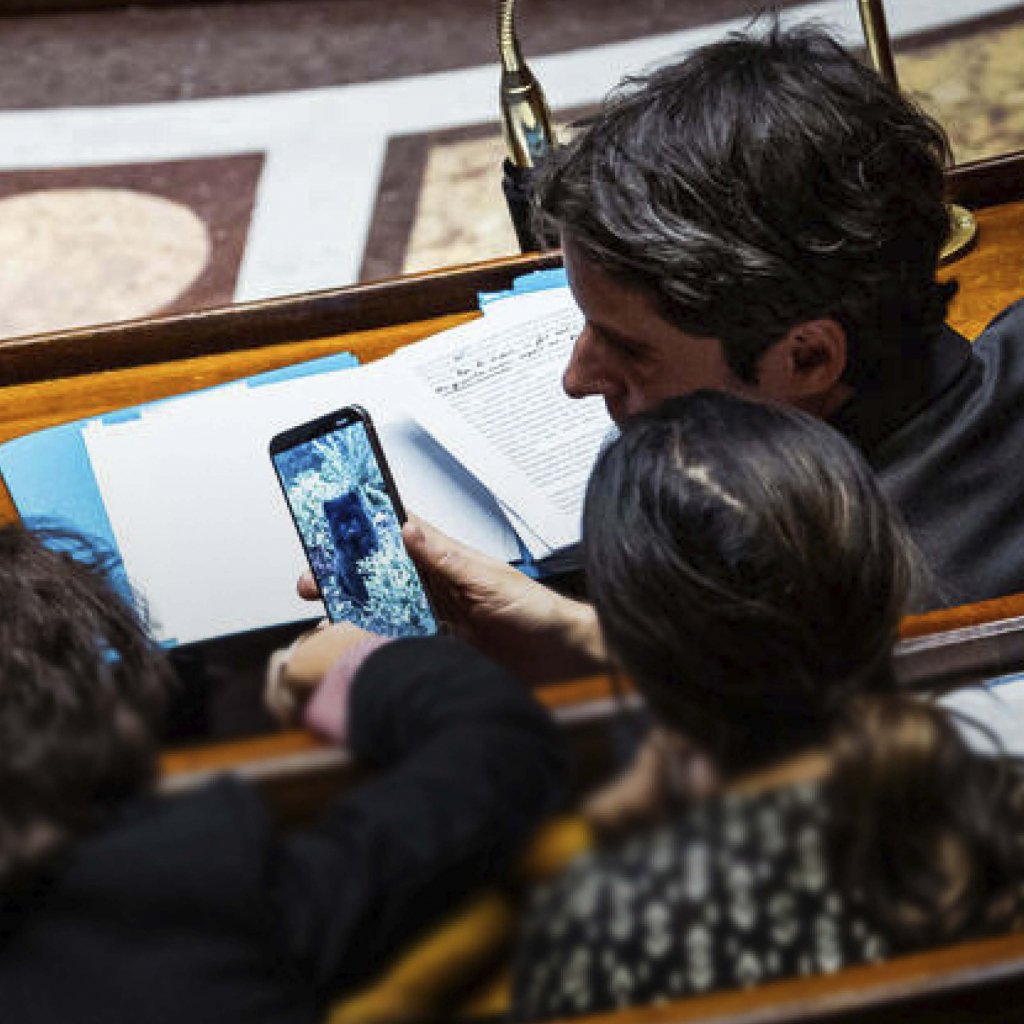 Gabriel Attal préfère regarder des photos de chiots sur son téléphone que d’écouter l’opposition parler des travailleur·se·s.