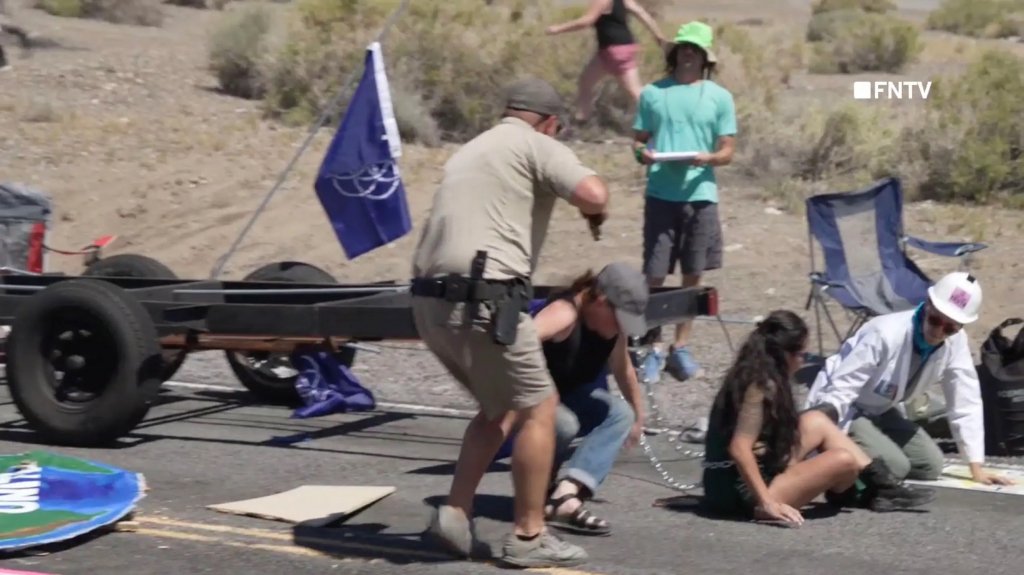 Des activistes écologistes bloquent l’accès au festival Burning Man.