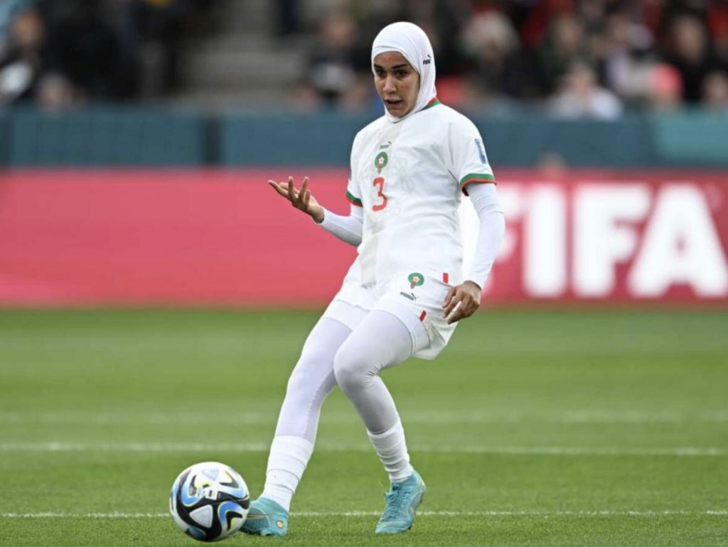 Nouhaila Benzina est devenue la première footballeuse à jouer voiler durant un match de la Coupe du monde.