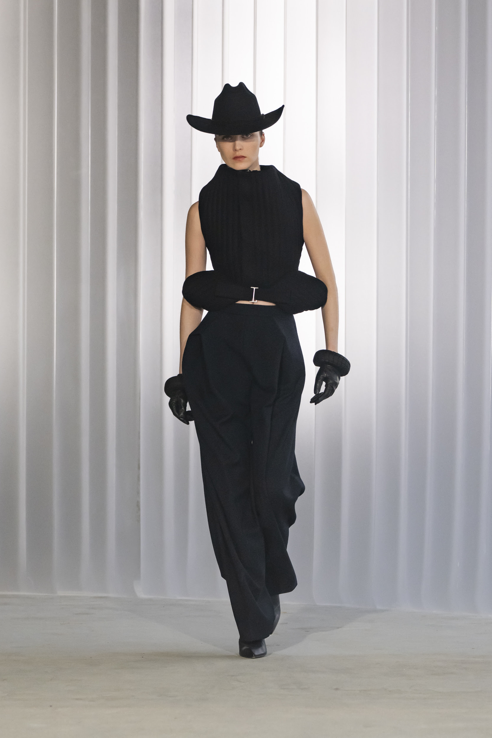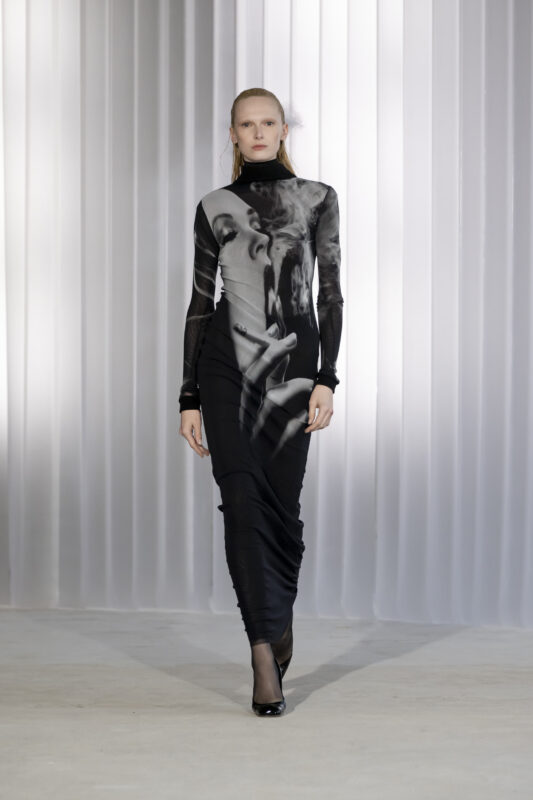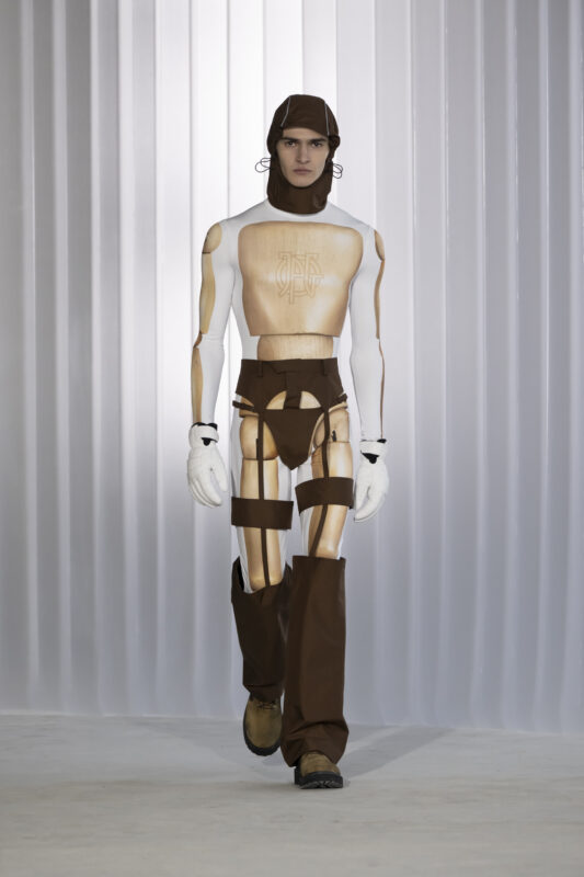 Ses débuts chez Jean Paul Gaultier avaient divisé. Certains y voyaient une provocation gratuite, d’autres un souffle nécessaire. Cette saison, la question ne se pose presque plus. Lantink a trouvé son rythme chez Gaultier. Un terrain où brouiller les genres n’a jamais été une provocation, mais une tradition.
