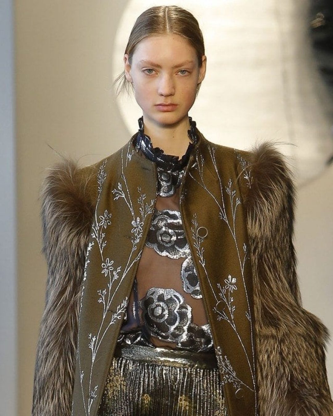 The arrival on the catwalk of the first shawl-collared plaid wool coat, which decadently came tied with a thick mink belt, was an original winner. As was the navy wool coat a model wore with its scarf collar worn up to mask the lower half of her face. It certainly felt perfect for the glacial temperatures in New York.