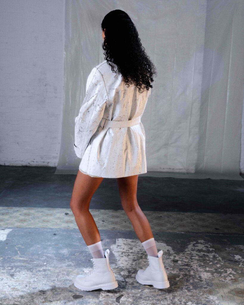 Inspirée du défilé printemps-été 2025 MM6 Maison Margiela, la nouvelle collaboration du label avec Dr. Martens mise sur un minimalisme épuré. Cette ligne capsule revisite deux modèles emblématiques, la botte 1460 et la chaussure 1461. L’embossage numérique de MM6 vient discrètement orner le cuir blanc, dont l’élegance monochrome constraste avec la robustesse de la silhouette Dr. Martens. Produites en édition limitée, les pièces de cette collection exclusive seront disponibles dès le 17 juillet.