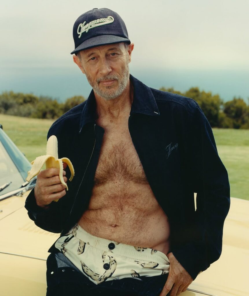 Alors que la première boutique Jacquemus de Los Angeles vient d’être inaugurée, le label continue de surfer sur la vague hollywoodienne en faisant appel à Jon Gries pour sa nouvelle campagne. Photographiée par Andrew Jacobs, elle met en scène l’acteur de la troisième saison de « The White Lotus » avec des bananes, un fruit au centre de la communication de la marque pour l’ouverture de ce nouveau flagship.