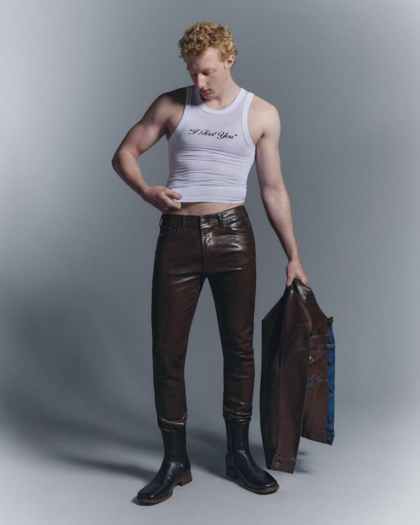 Mini shorts, pantalons raccourcis, denim enduit : chez Acne Studios, la masculinité s’exprime dans une sensualité nouvelle, instinctive et affranchie.