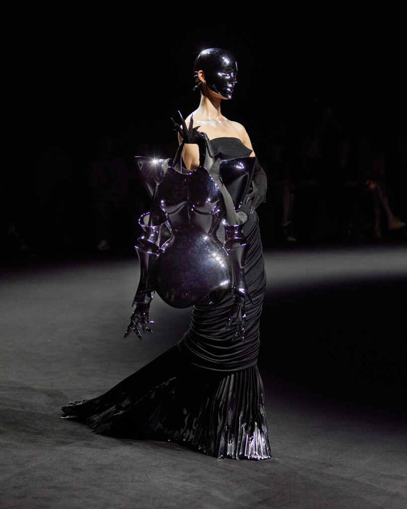Pour sa collection Haute Couture automne-hiver 2025/2026, baptisée « Becoming », Robert Wun orchestre un défilé où les corps se dédoublent, métamorphosés par des vêtements-sculptures aux lignes acérées. Le créateur explore l’acte de s’habiller comme un rituel intime, un passage entre le réel et l’imaginaire, entre le soi et ce que l’on devient. Une rêverie fantastique nous enveloppe, donnant vie à des créatures magnifiquement terrifiantes.